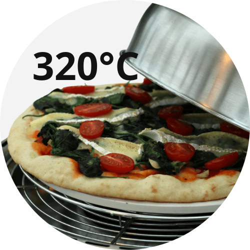 Le barbecue est prévu pour monter à des températures élevées, notamment pour la cuisson des pizzas grâce à la pierre.